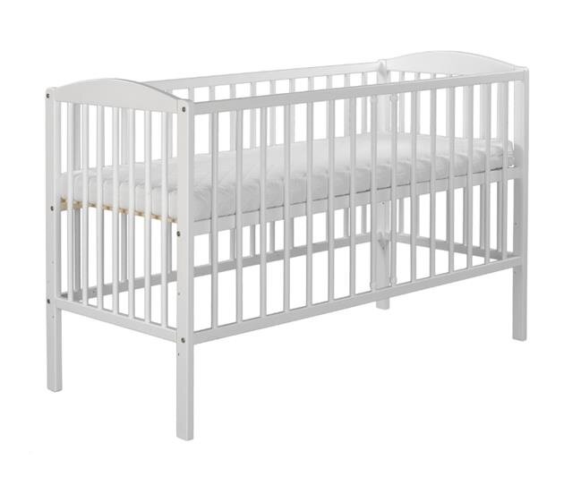 Dětská postýlka KLUPS „Radek II“.Materiál: borovice.Barva: Bílá.Vnitřní rozměr: 120x60cm.Dno postýlky lze nastavit do třech poloh podle věku dítěte.Matrace není součásti.Boční šprušle lze vytáhnout. przeczytaj całość