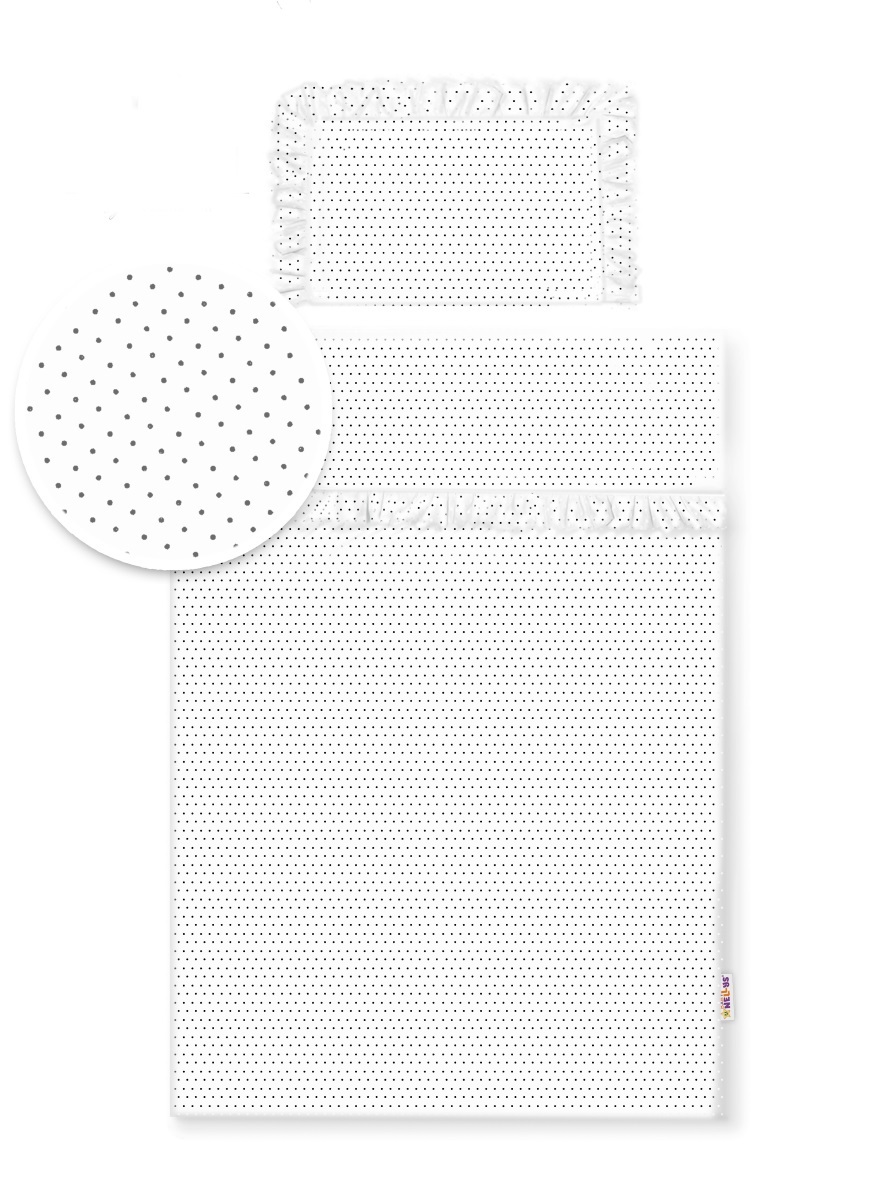 2-dílné bavlněné povlečení s volánky - bílé/tečky modré, 135x100 cm, Baby Nellys; bílá; 100 % bavlna