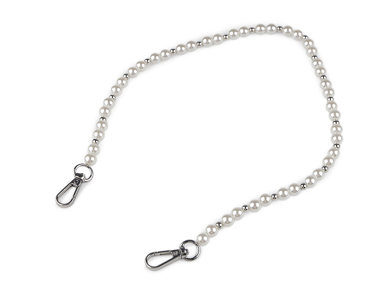Perlový řetízek / ucho na kabelky a telefony délka 60 cm - 1 ks - 1 perlová nikl