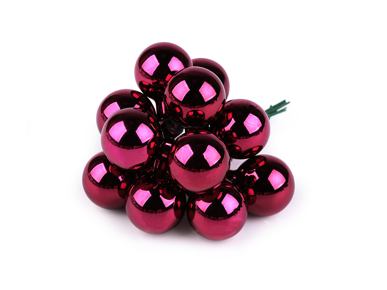 Vánoční skleněná baňka na drátku Ø2 cm - mat a lesk - 12 ks - 15 pink lesk