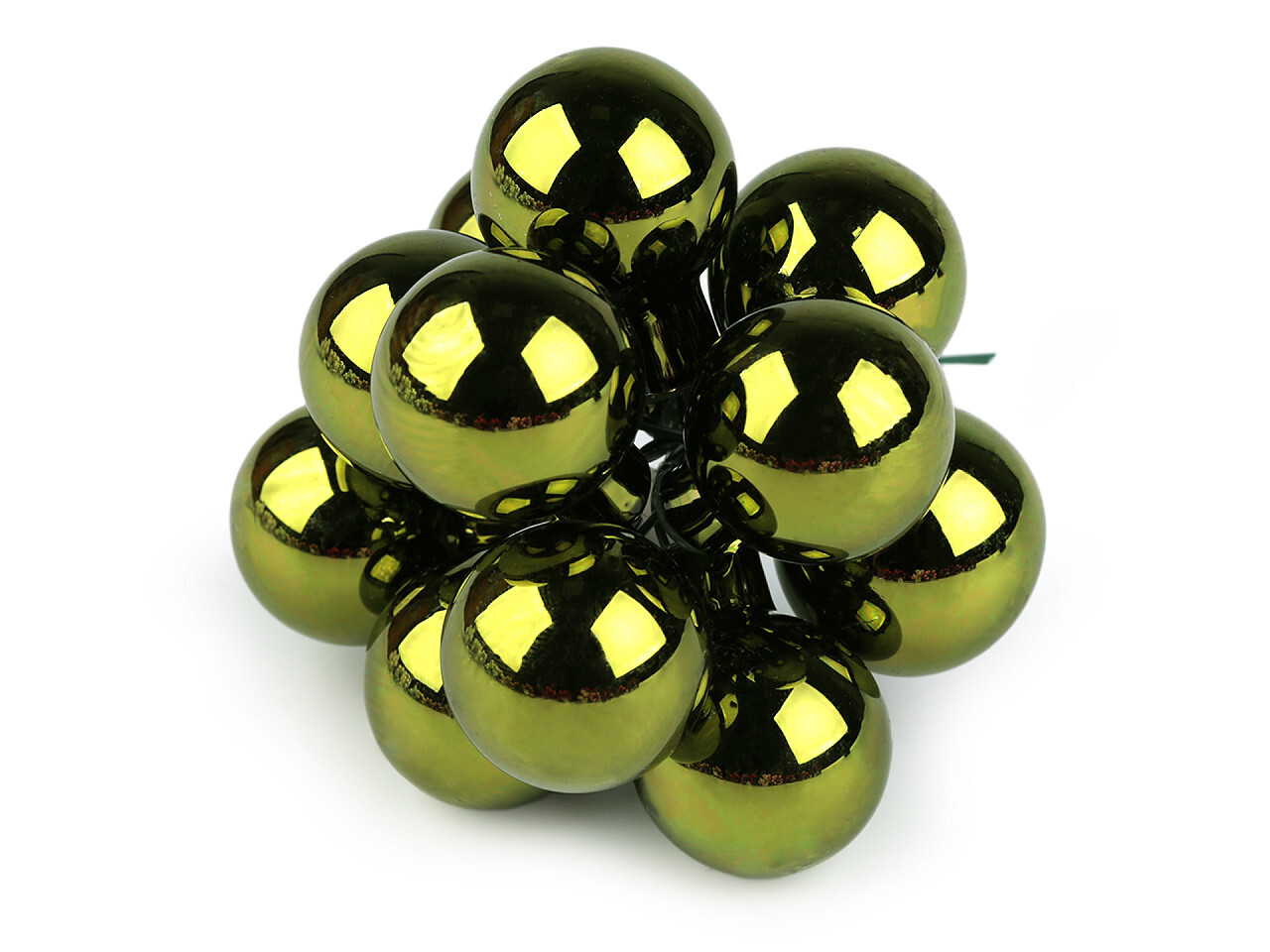 Vánoční skleněná baňka na drátku Ø2,5 cm - mat a lesk - 12 ks - 17 zelená lesk