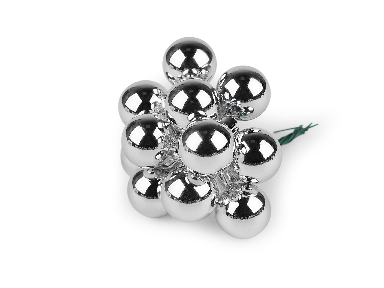 Vánoční skleněná baňka na drátku Ø2 cm - mat a lesk - 12 ks - 3 stříbrná lesk
