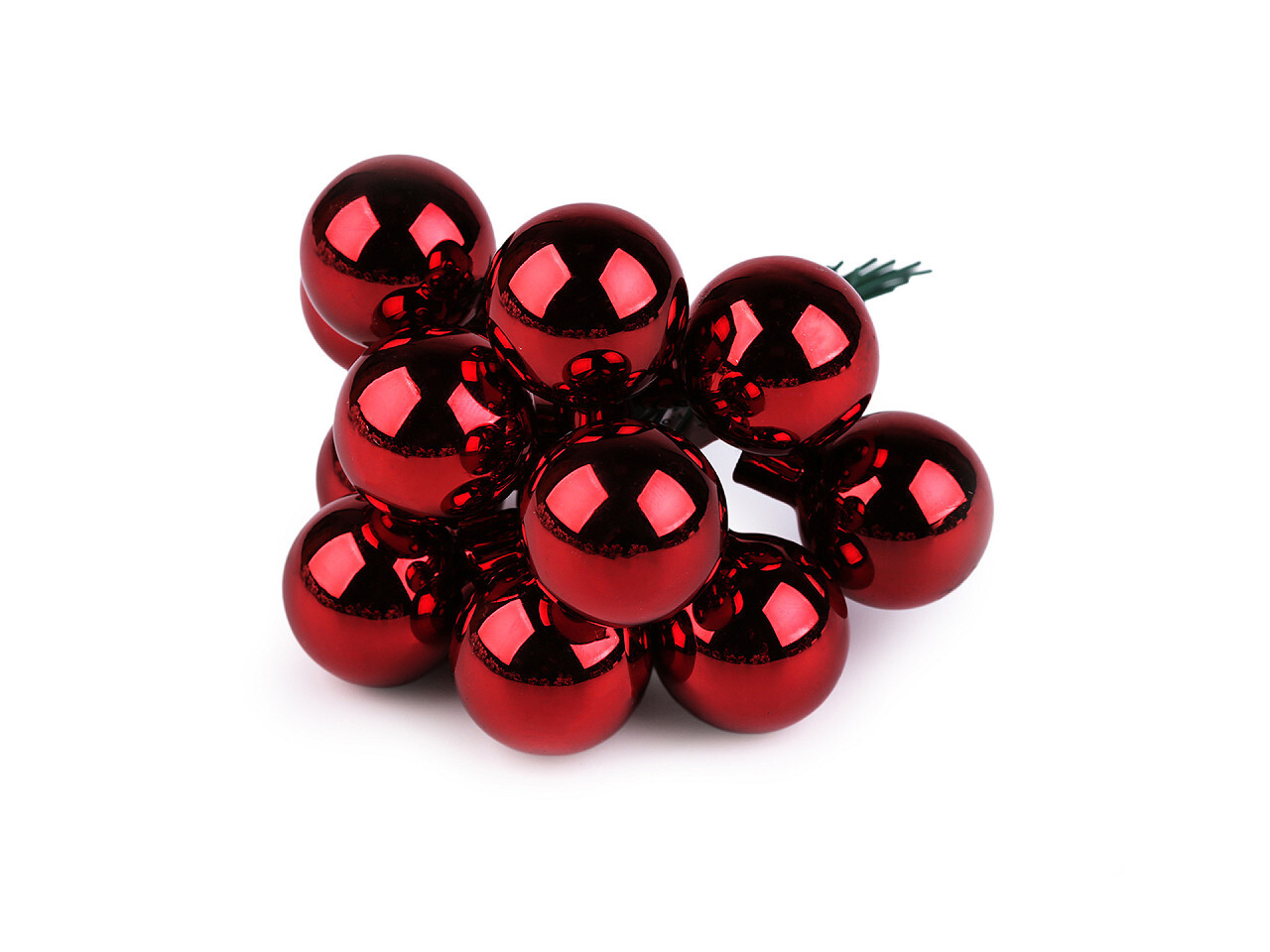 Vánoční skleněná baňka na drátku Ø2 cm - mat a lesk - 12 ks - 13 červená tmavá lesk