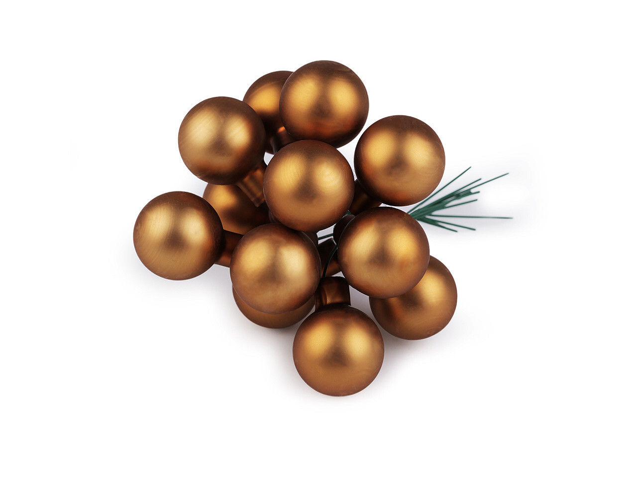Vánoční skleněná baňka na drátku Ø2 cm - mat a lesk - 12 ks - 8 zlatá tmavá mat