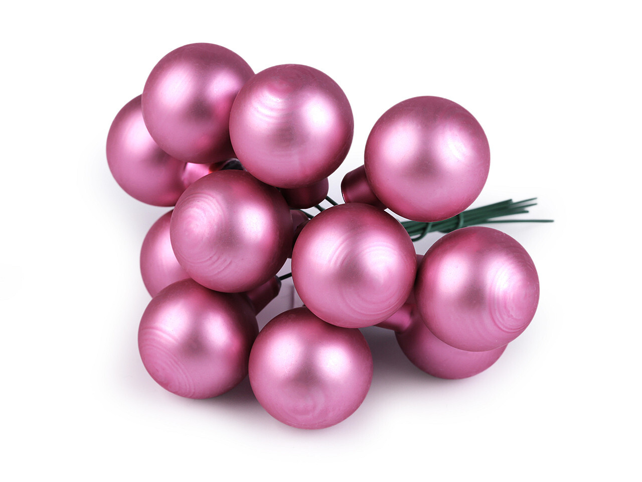 Vánoční skleněná baňka na drátku Ø2,5 cm - mat a lesk - 12 ks - 12 pudrová mat