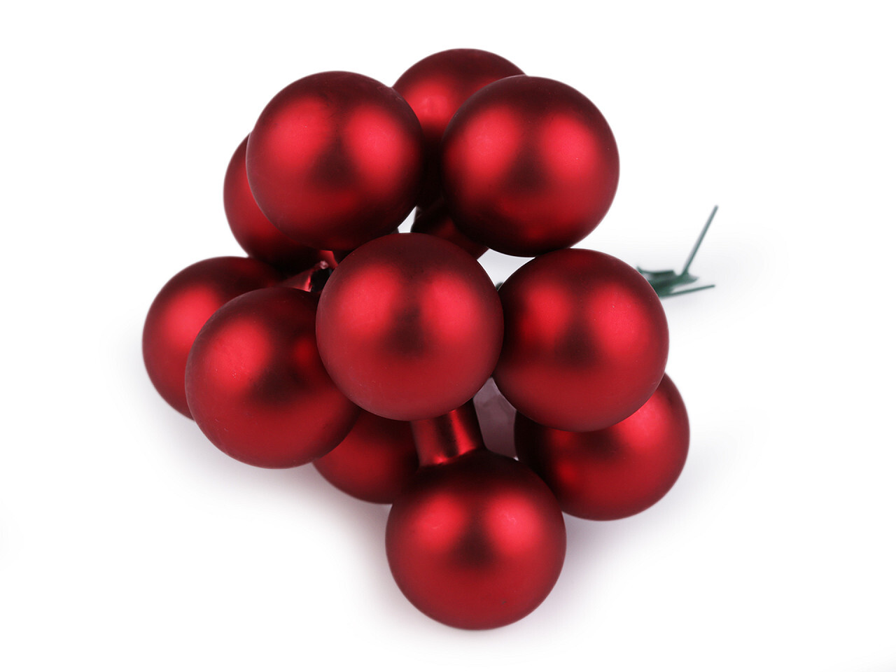 Vánoční skleněná baňka na drátku Ø2,5 cm - mat a lesk - 12 ks - 10 červená mat