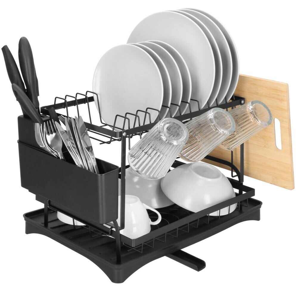 Dvoupatrový odkapávač na nádobí 42x30 cm SPRINGOS KI0157 černý
