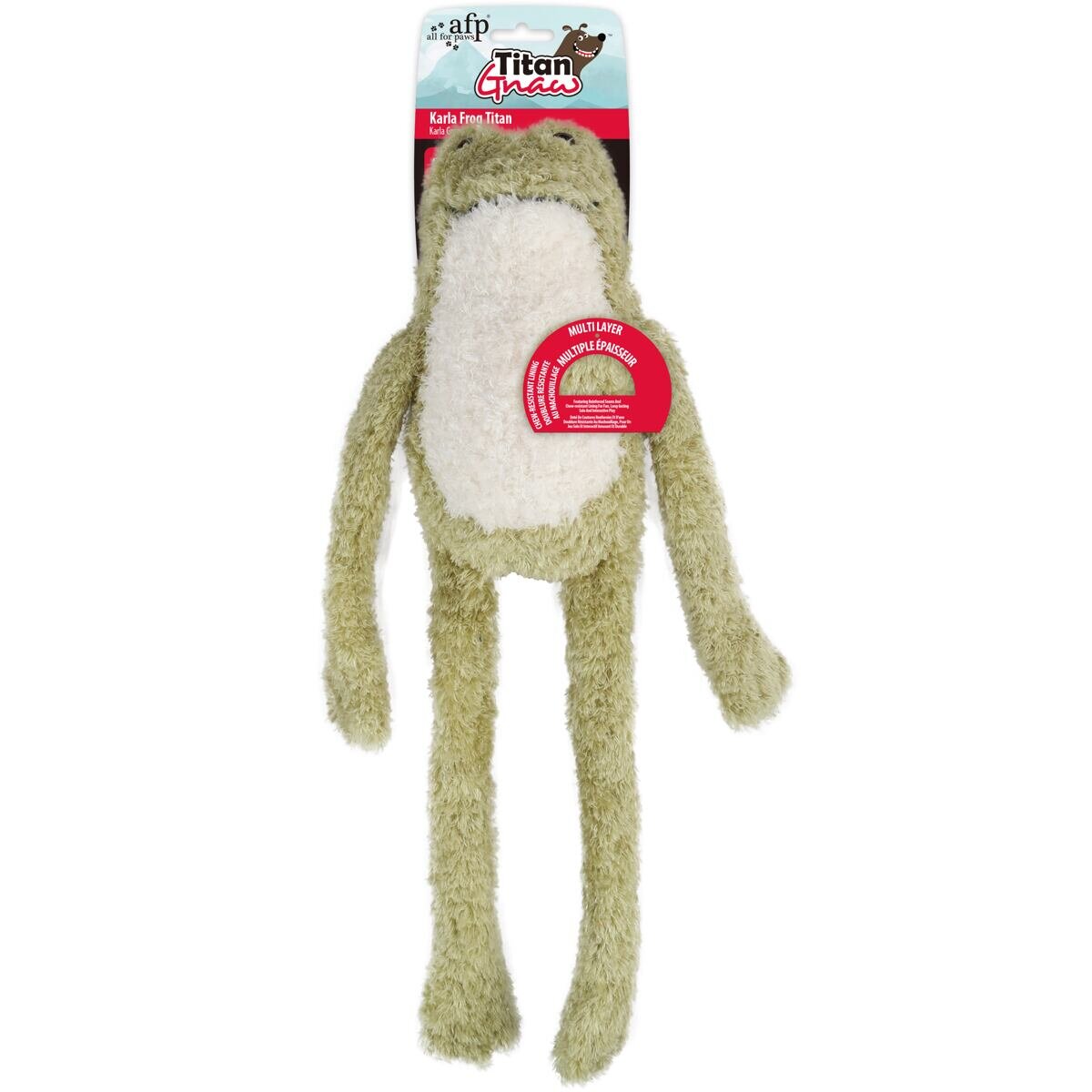 Žabka z kolekce Titan Gnaw je navržena speciálně pro psy, co se s hračkami „nepářou“!Díky zpevněným švům a odolné vnitřní vrstvě zvládne i divočejší hry, takže se hodí pro psy, kteří rádi hračku tahají, třepou nebo okusují. Její dlouhé ruce a nohy lákají ke kousání, třepání a přetahování – hra se...