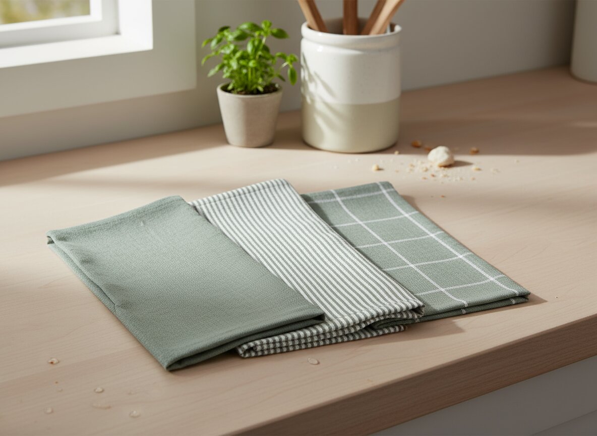 Sada 3 kusů o rozměrech 45 × 65 cm. - Zdobené odstíny zelené barvy s jemným kostkovaným a pruhovaným vzorem. - Univerzální design, který se hodí do každého interiéru. Praktické, savé a odolné – ideální pro každodenní použití.Sada zelených kuchyňských utěrek, 3 kusy, 45 × 65 cm.Hledáte funkční a...