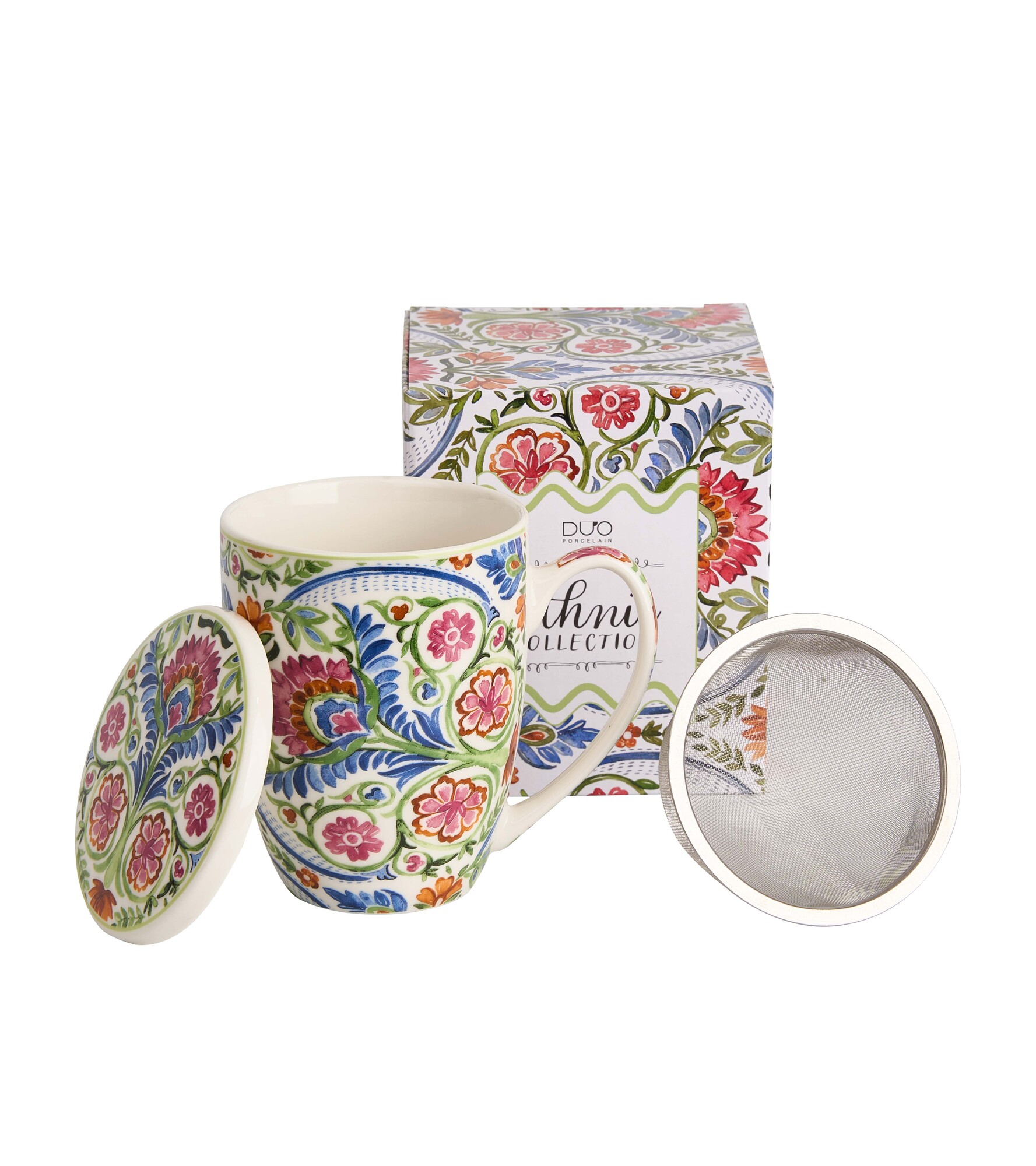 Kubek z zaparzaczem MAYFLOWER wchodzący w skład linii ETHNIC, wykonany z porcelany New Bone China, charakteryzującej się elegancką i naturalną kremowo - białą barwą z delikatnym połyskiem a także wyjątkową wytrzymałością przy zachowaniu lekkości i delikatności.Linia zdobiona mozaikową kompozycją...