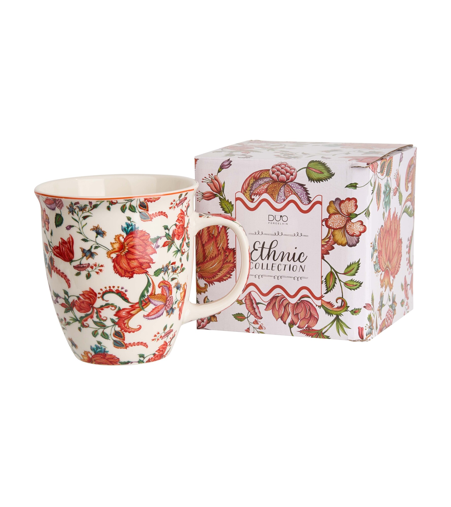 Kubek 650 ml PRIMAVERA wchodzący w skład linii ETHNIC, wykonany z porcelany New Bone China, charakteryzującej się elegancką i naturalną kremowo - białą barwą z delikatnym połyskiem a także wyjątkową wytrzymałością przy zachowaniu lekkości i delikatności.Linia zdobiona motywem fantazyjnego i...