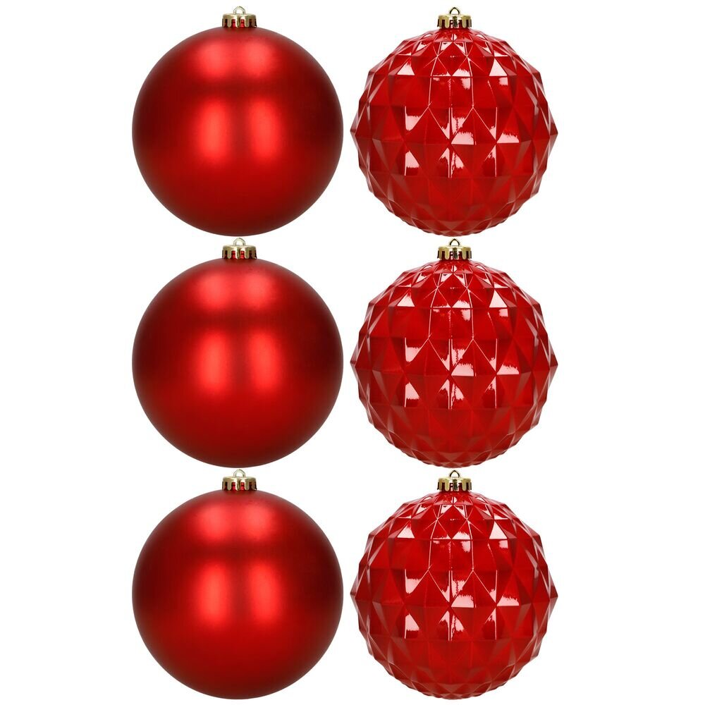 Vánoční baňky - červené mix 15 cm, sada 6ks CA1528