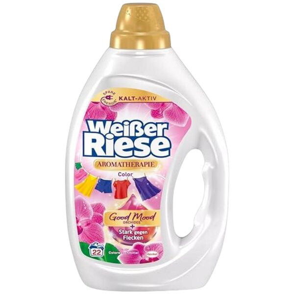 Weisser Riese gel 990ml Color Good Mood Orchidee - 22 PDWeisser Riese gel 990ml Color Good Mood Orchidee je kvalitní prací gel na barevné prádlo navržený tak, aby rozzářil barvy a zajistil svěží pocit prádla po každém praní. Díky účinnému složení je použitelný při teplotách 20–60 °C, což šetří...