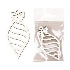 Drewniana bombka ażurowa Sopel, biała.średnica 8cm,wysokość całkowita 10cm.W opakowaniu 3szt przeczytaj całość