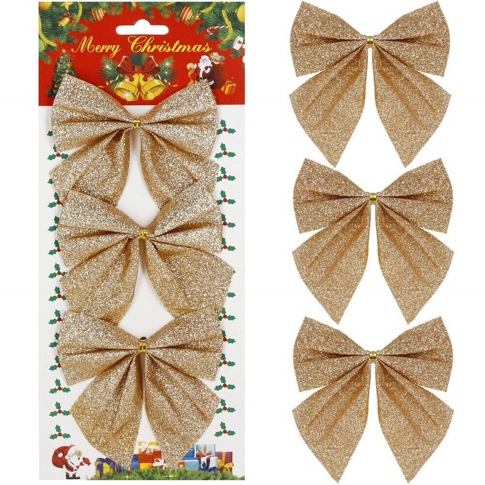 Vánoční mašle 11x11cm zlaté sada 3ks, vánoční dekorace