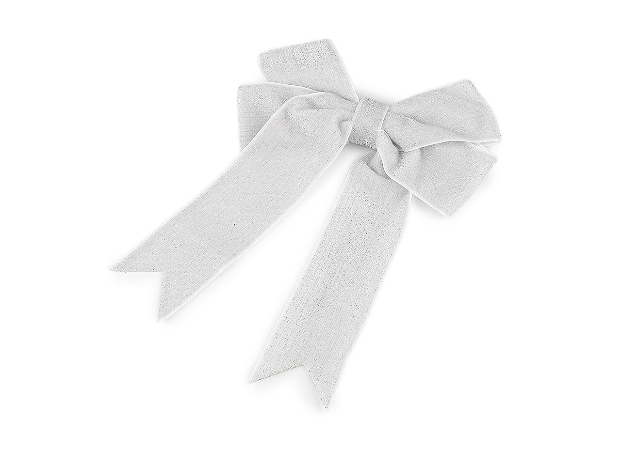 Vánoční mašle sametová dvojitá 13x18 cm - 6 ks - 5 stříbrná lurex