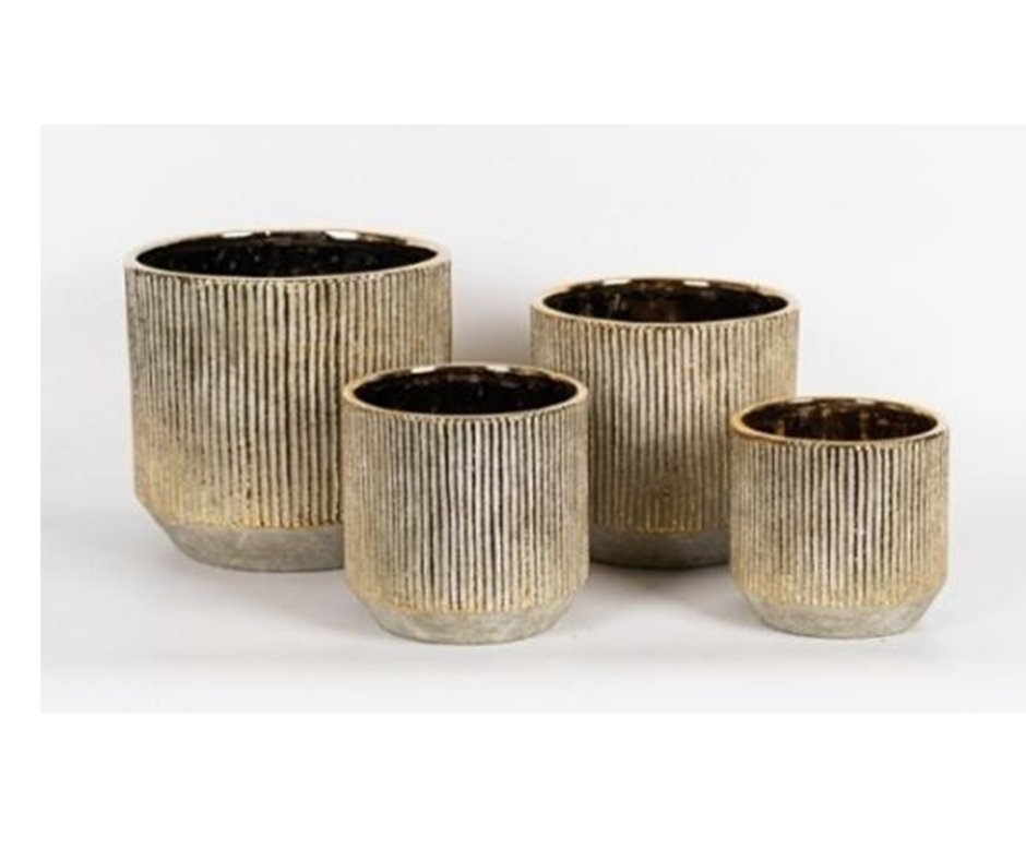 Keramický květináč bílý se zlaceným svislým vzorem, 14 x 14 x 13 cm