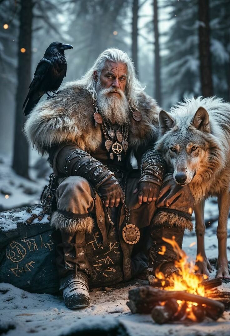 Diamantový obrázek Severský válečník s vlkem 30 x 40 cm