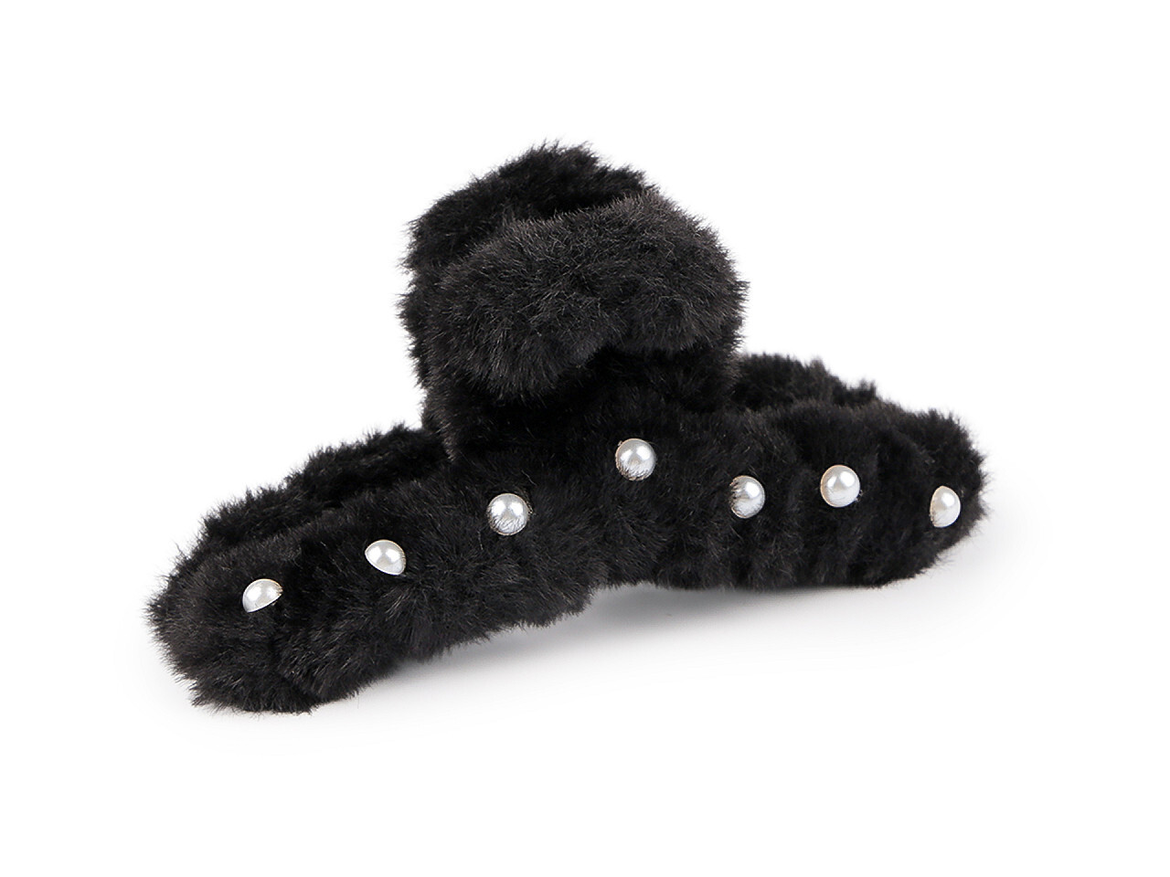 Skřipec do vlasů kožešinový s perlami - 1 ks - 3 černá