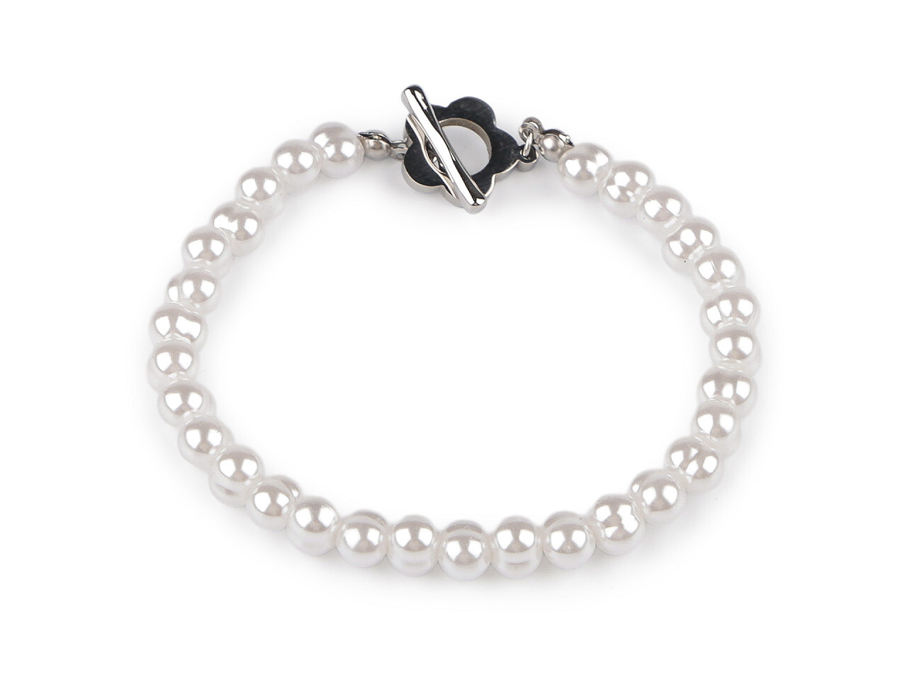 Náramek z nerezové oceli perlový - 1 ks - 1 bílá květ