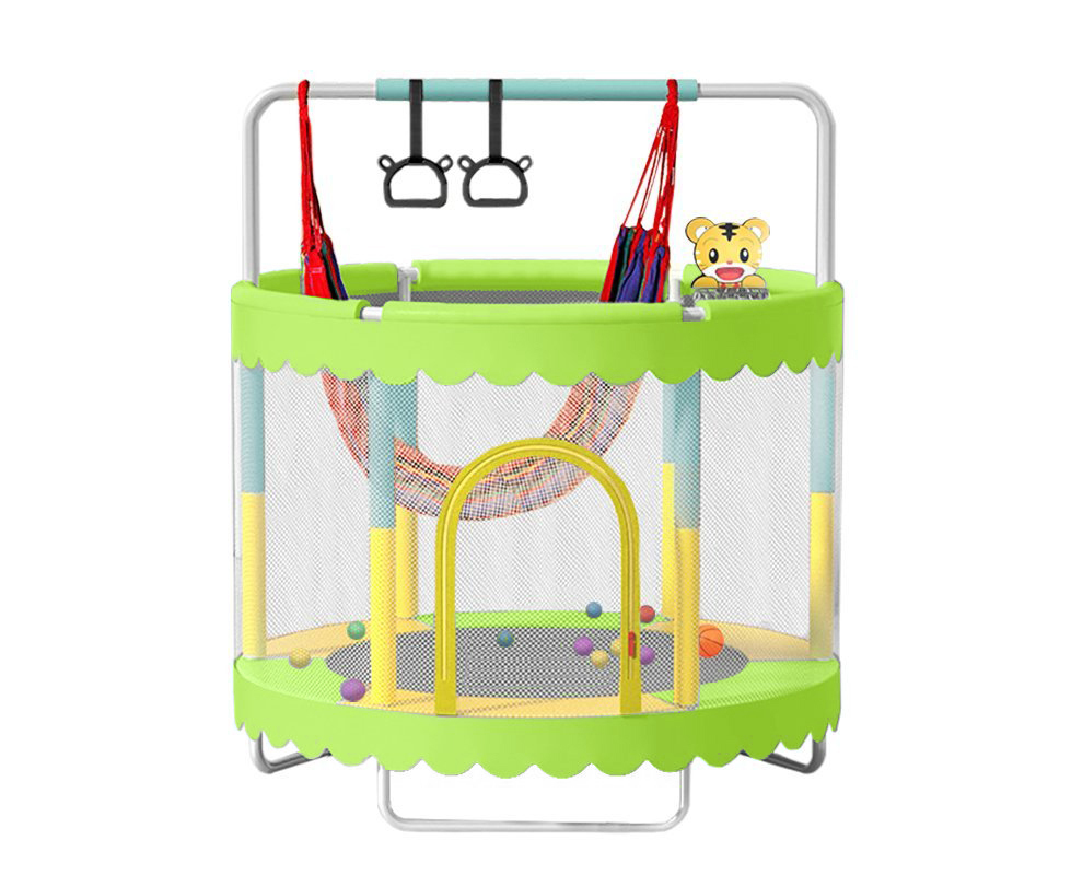 Dětská trampolína SEDCO 150 cm s ochrannou sítí,houpačkou a vybavením - Zelená