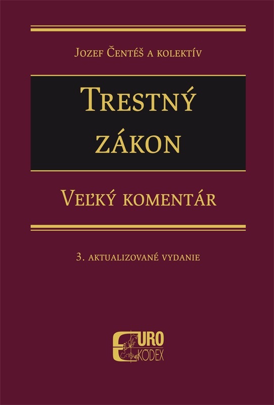 Komentár s vysvetlivkami a ucelenou judikatúrou k Trestnému zákonu Kolektív renomovaných autorov pod vedenim Prof. JUDr. Jozef Čentéša, PhD predkladá odbornej a laickej verejnosti aktualizovaný komentár s vysvetlivkami a ucelenou judikatúrou k Trestnému zákonu. Komentár spracovali autori z rôznych významných profesionálnych a vysokoškolských inštitúcií, čo mu dodáva na praktickosti. Jeho prednosťou je odborná aktuálnosť a schopnosť reagovať na nové inštitúty a skutkové podstaty v trestnom práve hmotnom. Podáva ucelený právny výklad jednotlivých ustanovení a ďalších praktických otázok, ktoré s nimi úzko súvisia, najmä z oblasti súdnej praxe a judikatúry. Text komentára nie je koncipovaný len z hľadiska teoretického a výkladového, ale reaguje aj na získané a vyhodnotené poznatky z aplikácie nových ustanovení a právnych inštitútov. Odborne erudovaný a svojím obsahom priekopnícky komentár má všetky predpoklady stať sa nielen vyhľadávaným vedeckým dielom, ale nadobudnúť prívlastok hodnotnej a praktickej publikácie, ktorá svojim čitateľom najmä z radov prokurátorov, vyšetrovateľov, sudcov, obhajcov, študentov práva, doktorandov, ale aj ostatných subjektov dotknutých ustanoveniami Trestného zákona poskytovať cenné rady pre ich každodennú prax.