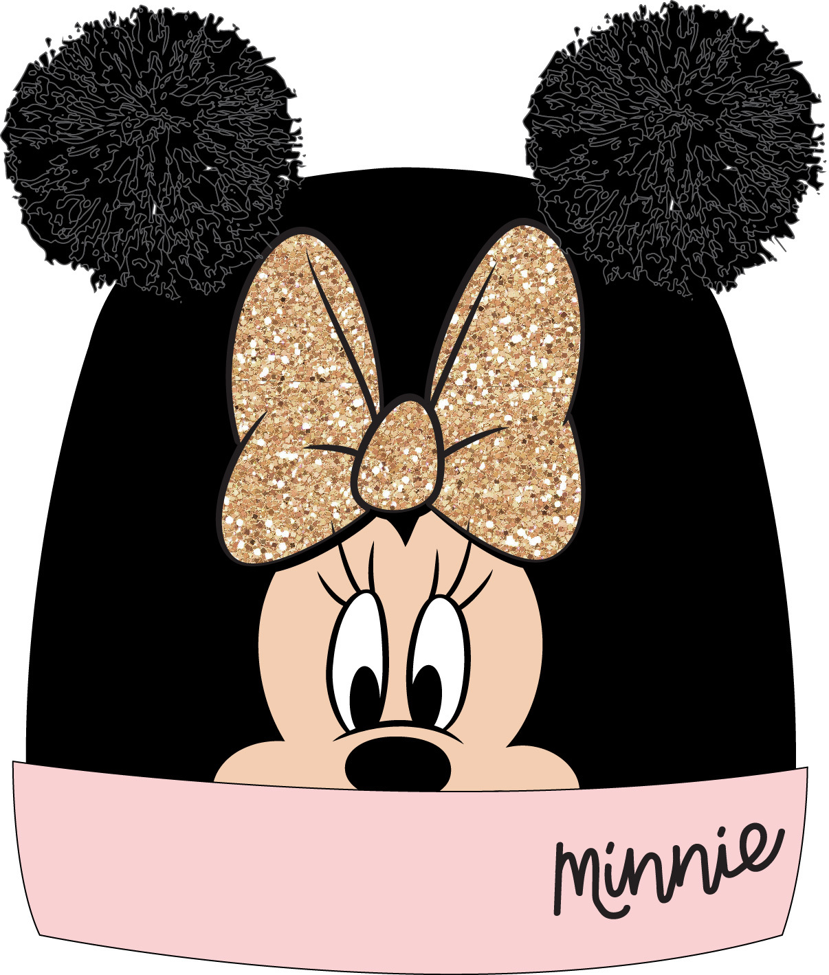 Dívčí čepice MINNIE dvě bambule a zlatá mašle zimní černá, velikosti: 52