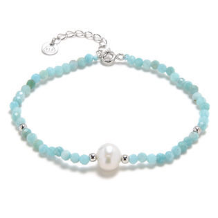 AU0017 Minerální náramek přírodní Amazonit a perla, stříbro AG925