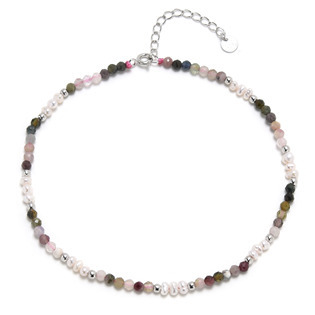 Náramek na kotník s přírodními broušenými kameny Turmalínu a kultivovanými bílými perlami. Komponenty náramku jsou vyrobeny z jakostního stříbra 925/1000