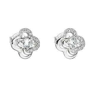 EG2218 Stříbrné náušnice pecka se zirkonem bílá kytička - květiny