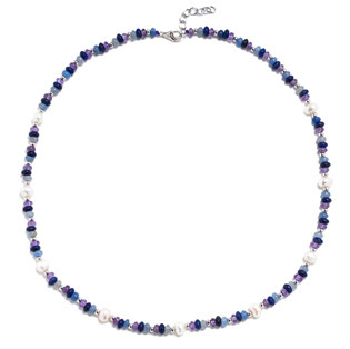 AU1004 Minerální náhrdelník přírodní Ametyst, Lapis lasuli, Aventurín a perly, stříbro AG925