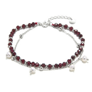 AU0004 Minerální náramek přírodní Granát a perly, stříbro AG925