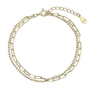 EG7613 Pozlacený náramek dvojitý řetízek kuličky a oválky