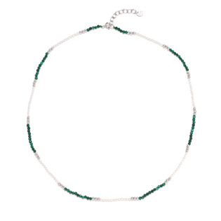 AU1006 Minerální náhrdelník přírodní Malachit a perly, stříbro AG925