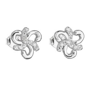 EG2581 Stříbrné náušnice s kytičky se zirkony - květiny