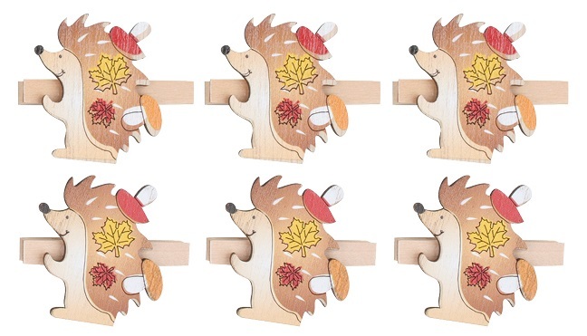 Dřevění ježci na kolíčkuKolíčky můžete použít na ozdobu věnců, vazeb a nebo třeba přání.6 kusů v balení. przeczytaj całość