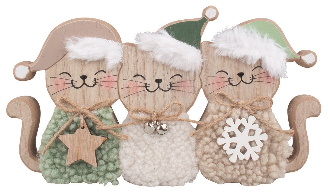 Kočky s kožíškem dřevěné na postavení, 25 x 14 x 2 cm Tato dřevěná dekorace s roztomilými kočkami s kožíškem je vkusným doplňkem pro váš domov. Detailní provedení, doplněné o jemný kožíšek, přináší do vašeho interiéru nádech elegance a tepla. Díky stabilní základně je ideální k postavení na...