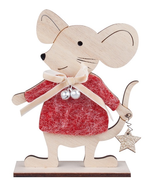 Dřevěná myška v červeném svetříku na postavení, 12 x 15 x 4 cm Tato roztomilá dřevěná myška v červeném svetříku je skvělým doplňkem pro vaši zimní nebo vánoční výzdobu. S jejími roztomilými detaily a veselým vzhledem vnese do vašeho domova radostnou a útulnou atmosféru, která potěší každého...