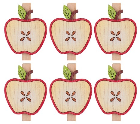 Jablíčka dřevěná na kolíčku 3,5 cm, 6 ks