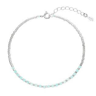Tento jemný náramek je vyroben z kvalitního stříbra a zdoben pravými amazonity. Skládá se z drobounkých stříbrných korálků, které tvoří většinu náramku, a ze sekce světle modrozelených korálků z amazonitu, jež mu dodávají svěží a elegantní vzhled.Náramek je zakončen klasickým zapínáním na...