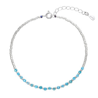 Tento jemný náramek je vyroben z kvalitního stříbra a zdoben korálky z pravého apatitu v sytě modré barvě. Skládá se z drobných stříbrných korálků, které tvoří většinu náramku, a z části z drobných modrých kamínků apatitu, které mu dodávají živý a svěží vzhled.Náramek je zakončen klasickým...