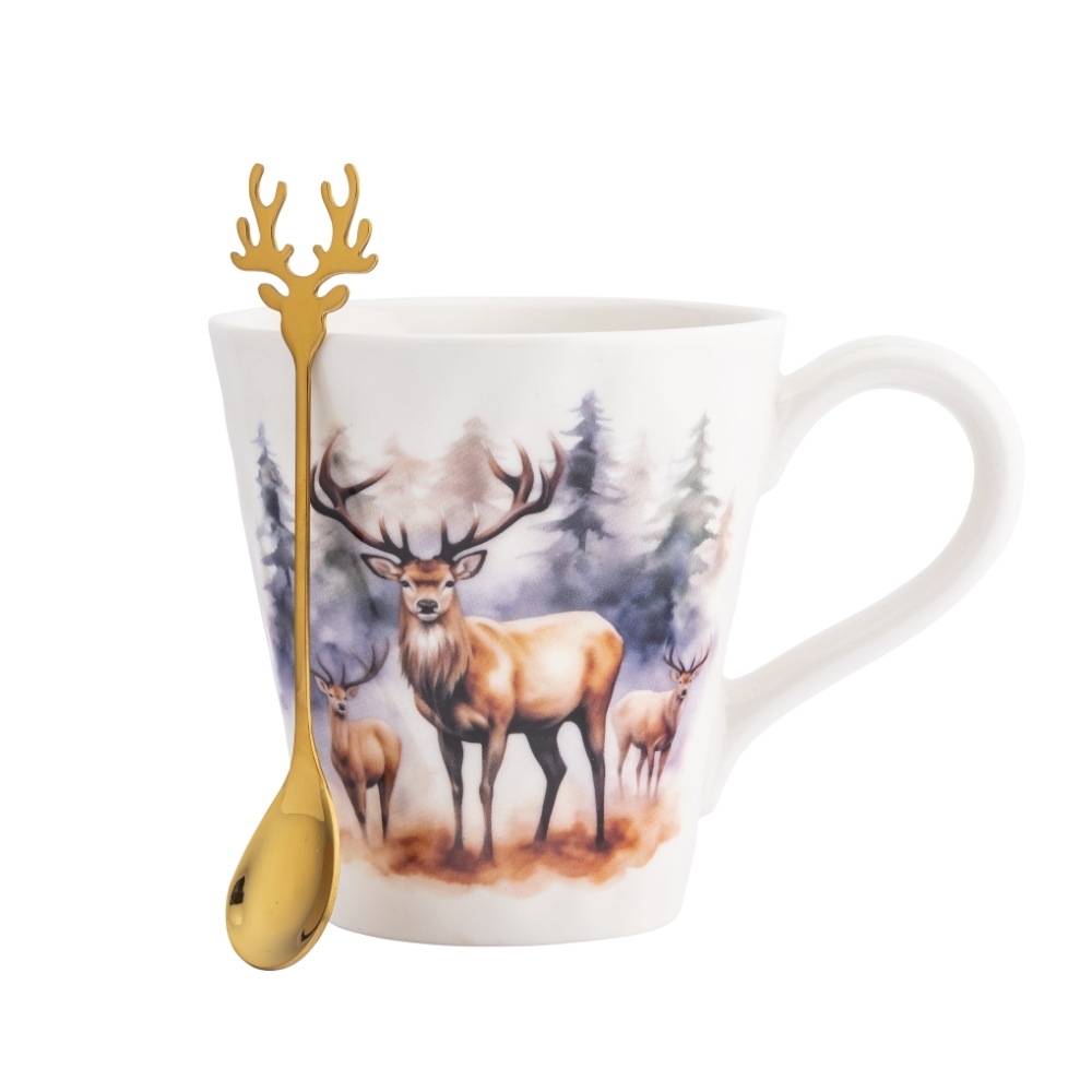KUBEK STOŻEK NBC 480 ML ZE ZŁOTĄ ŁYŻECZKĄ DEK. JELEŃ B COLOR BOX