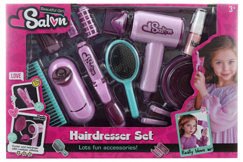 Velká sada pro malé kadeřnice. Balení obsahuje kulmu, fén, hřeben, kartáč, natáčky a sponky. Kulma napájena na 3xAG13 baterie (jsou součástí balení), fén napájen na 2xAAA baterie (nejsou součástí balení). Materiál plast. Baleno v krabici. Rozměry balení 39,5x26x6,5 cm. Věk 3+ przeczytaj całość