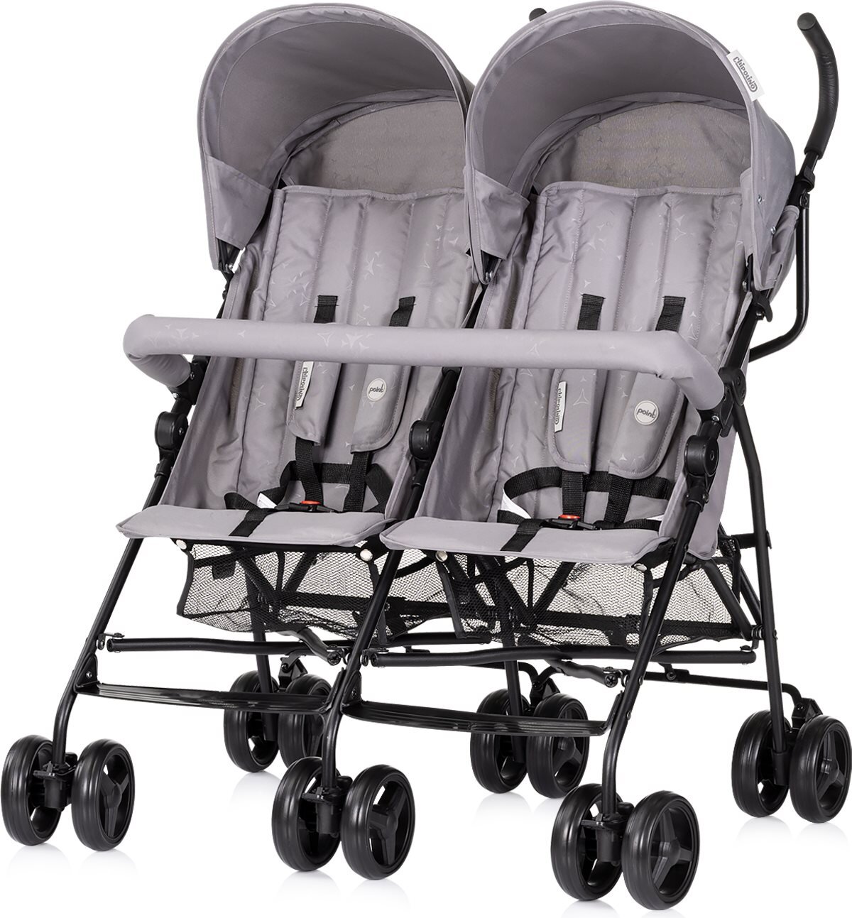 Golfový kočárek pro dvojčata Double Point od značky Chipolino je vhodný pro děti od 6 do 36 měsíců s hmotností do 15 kg. Vlastnosti!: lehký klasický rám, snadné a kompaktní skládání typu „deštník“, 2 polohy opěradla u každého sedadla, 5-bodový bezpečnostní pás s měkkými ramenními...