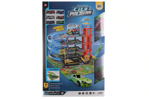 Velká plastová garáž. Balení také obsahuje 6 autíček a látkový koberec. Rozměr koberce 150x120 cm. Rozměry balení 50x78x9 cm. Věk 3+ przeczytaj całość