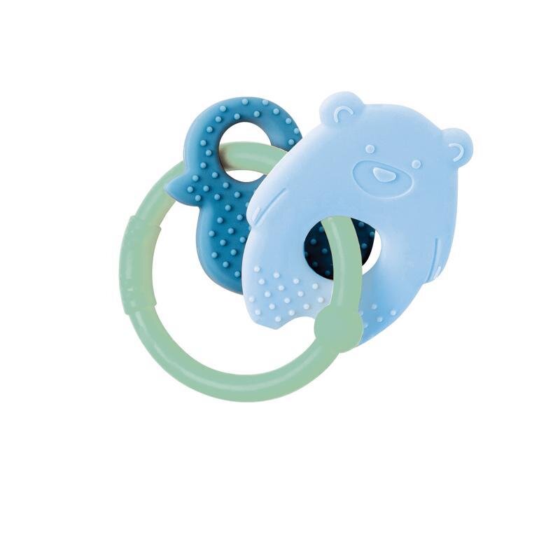 Silikonové kousátko, složené ze tří různých částí, zmírní bolest při prořezávání prvních zoubků. Může být použito i jako jednoduché chrastítko a také díky svému tvaru a designu na rozvoj motorických dovedností malých ručiček. Krásný decentní design. Vhodné od 4 měsíců.Složení: silikon BPA...