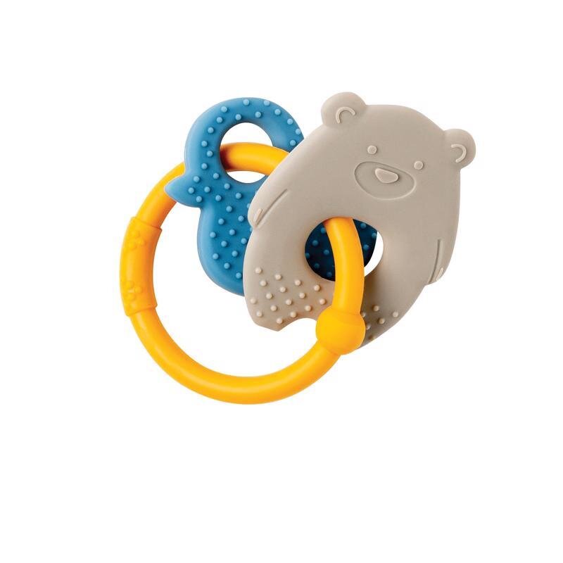 Silikonové kousátko, složené ze tří různých částí, zmírní bolest při prořezávání prvních zoubků. Může být použito i jako jednoduché chrastítko a také díky svému tvaru a designu na rozvoj motorických dovedností malých ručiček. Krásný decentní design. Vhodné od 4 měsíců.Složení: silikon BPA...