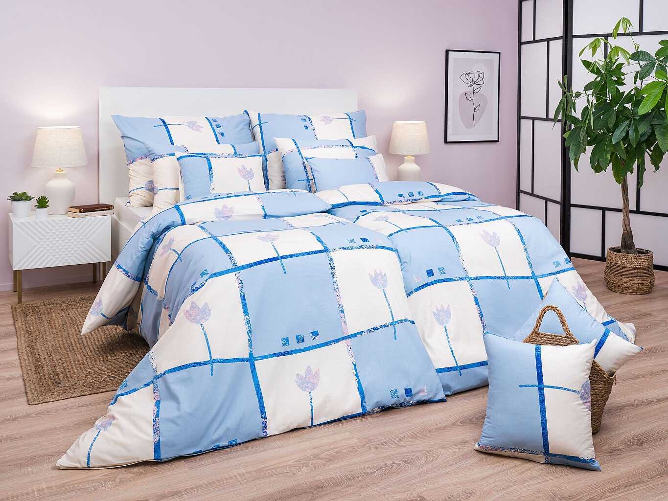 Povlečení bavlna Tulipán světle modrý 240x220, 2x 70x90 cm