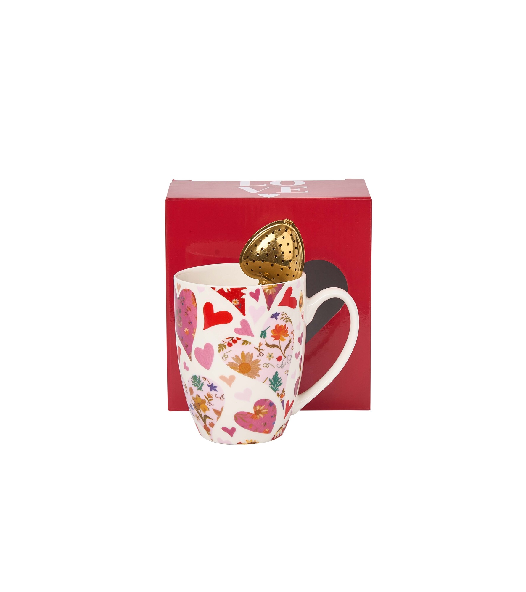 Kubek classic z zaparzaczem "serce" RÓŻOWE SERCA