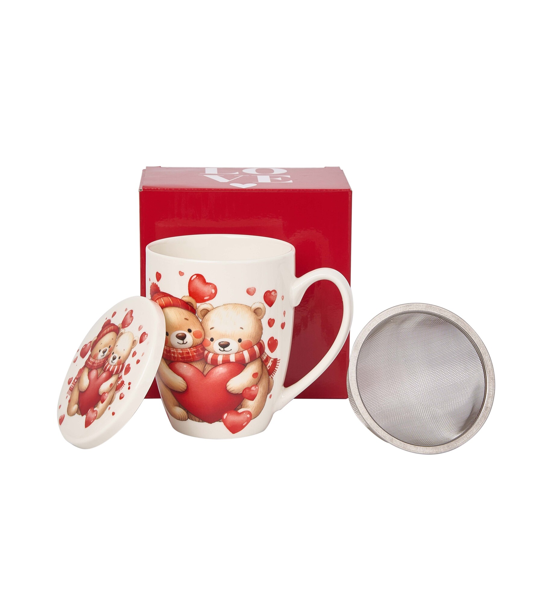 Kubek z zaparzaczem MISIE Z SERCAMI wchodzący w skład linii SERCA, wykonany z porcelany New Bone China, charakteryzującej się elegancką i naturalną kremowo - białą barwą z delikatnym połyskiem a także wyjątkową wytrzymałością przy zachowaniu lekkości i delikatności.Doskonały do przyrządzania...
